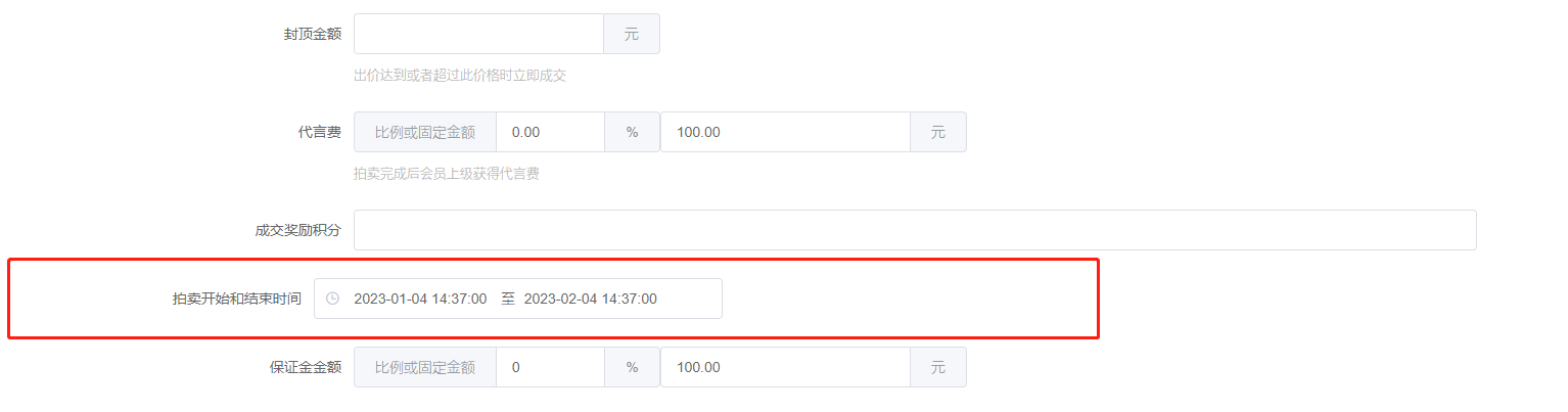 10、拍卖开始时间和结束时间,再次时间内会员可以参与出价竞拍